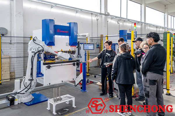 SHENCHONG Italy Robotic Bending Unit Installation, commissioning, and technical training work has been successfully completed. WDK-80X1500MM hybrid CNC press brake machine with ABB IRB 4600-60 robot is a highly efficient, energy-saving, and flexible solution designed specifically for small work pieces.